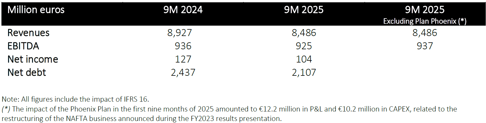 These results have been achieved in a complex environment for an industry undergoing a fast and in-depth transformation, characterized by volatility in production volumes, tariff pressures, and regulatory uncertainty. In this context, the company closed the first nine months of the year with revenues of €8,486 million, affected by the negative impact of foreign exchange rates.
